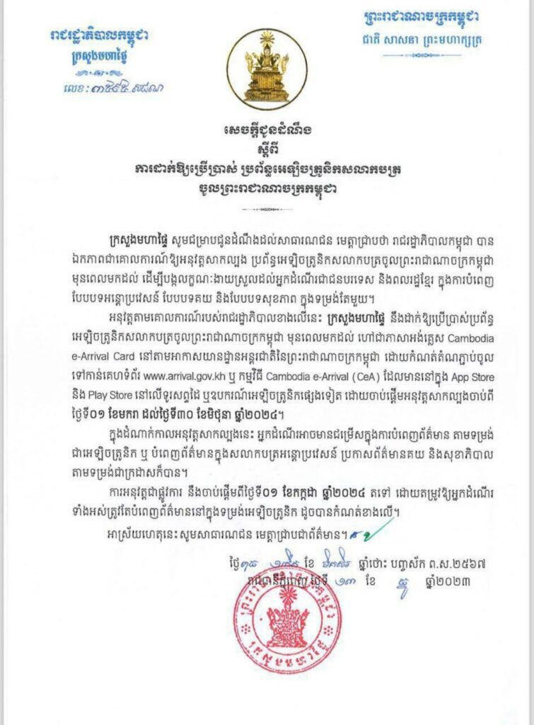 Known as the Cambodia e-Arrival Card (CeA), this initiative aims to expedite and modernize the entry process. The digital card replaces the traditional paper-based immigration form, health form and customs declaration, consolidating them into a single, convenient online portal.